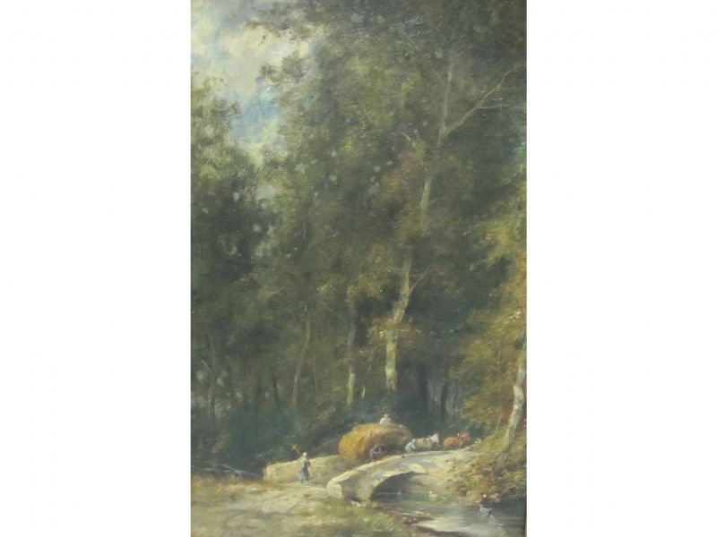 | A wooded Landscape with Figures and Hay-waon crossing a Bridge, | |