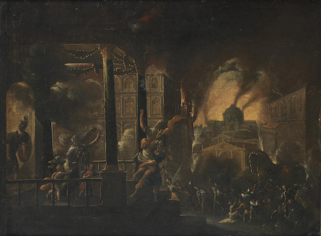 The Fall of Troy with Aeneas carrying Anchises from the burning city