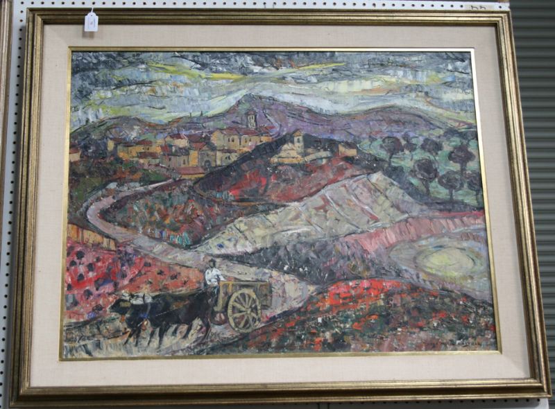 Landscape with a Figure on a Cart pulled by Oxen, a Town beyond
