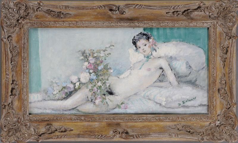 YOUNG LADY IN REPOSE WITH FLOWERS