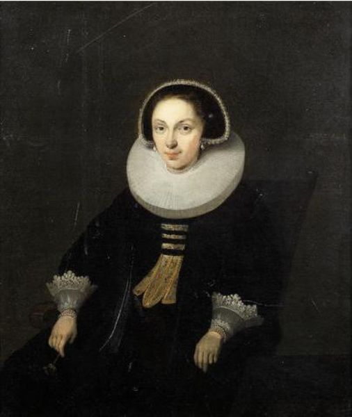 | Portrait of a lady, seated, three-quarter-length, in a black dress with a white ruff and lace cuffs | |