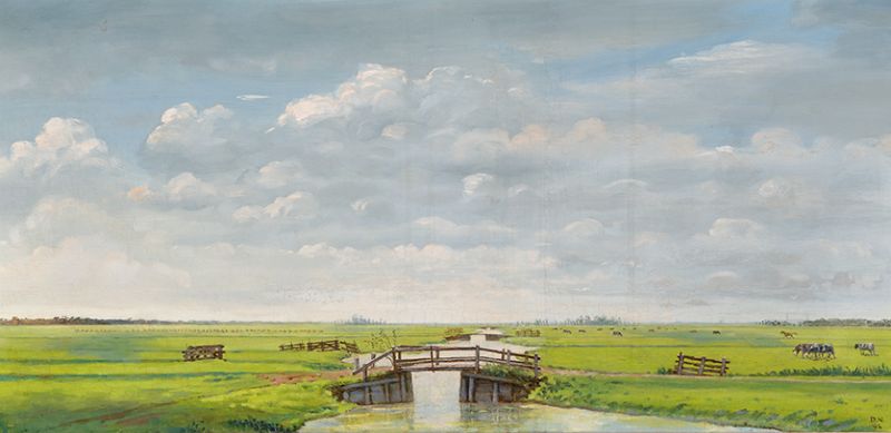 | Polderlandschap bij Voorschoten met uitzicht op Den Haag | |