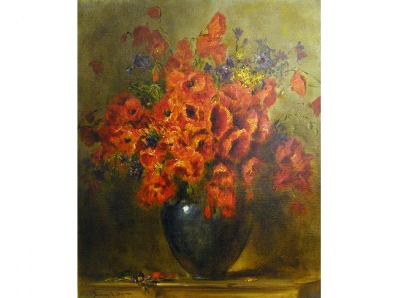 Still life of poppies within a baluster vase
