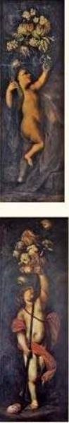 Putto à la grappe de raisin surmonté d'un bouquet de fleurs