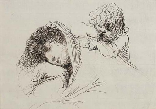 | A sleeping woman, half-length, an infant leaning on her shoulder | |