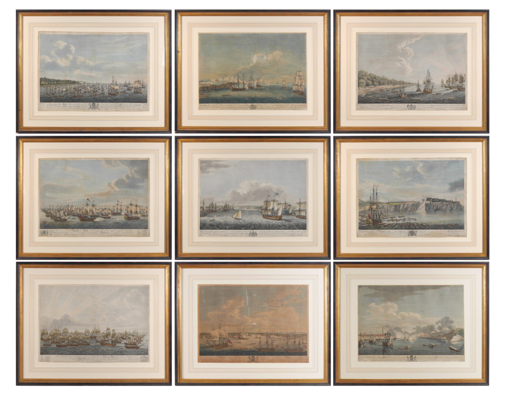9 engraved prints from a series of 12 depicting