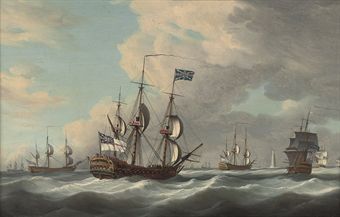 | A Royal Navy Squadron of the White running up the Channel past the Eddystone lighthouse | |