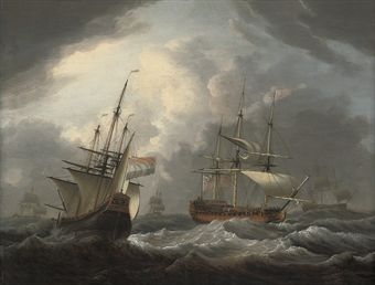 | An English frigate passing a Dutch merchantman in congested waters | |
