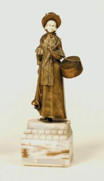 Modesty - élégante tenant son parapluie et un carton à chapeau