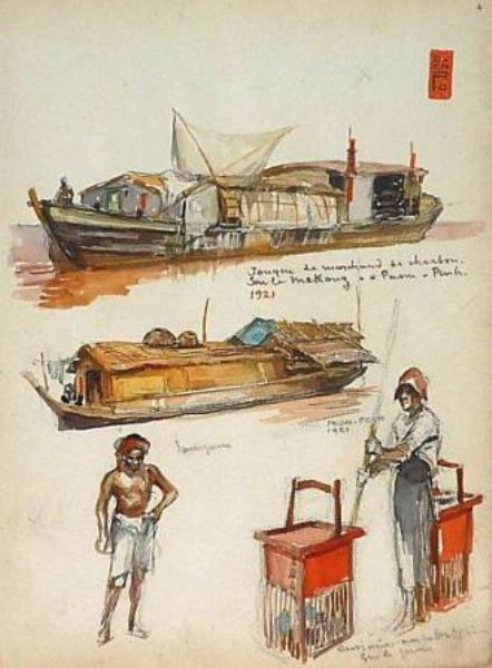JONQUES DE MARCHANDS DE CHARBON ET CUISINIER (PNOM-PENH)