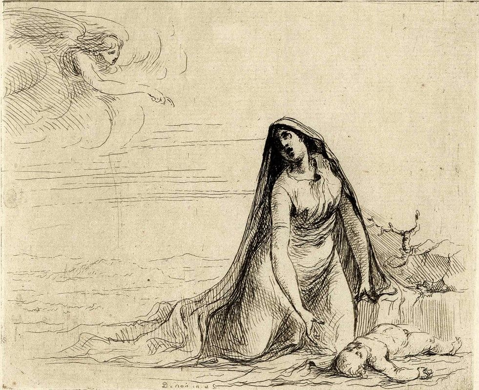 | Agar ed Ismaele nel deserto. | |