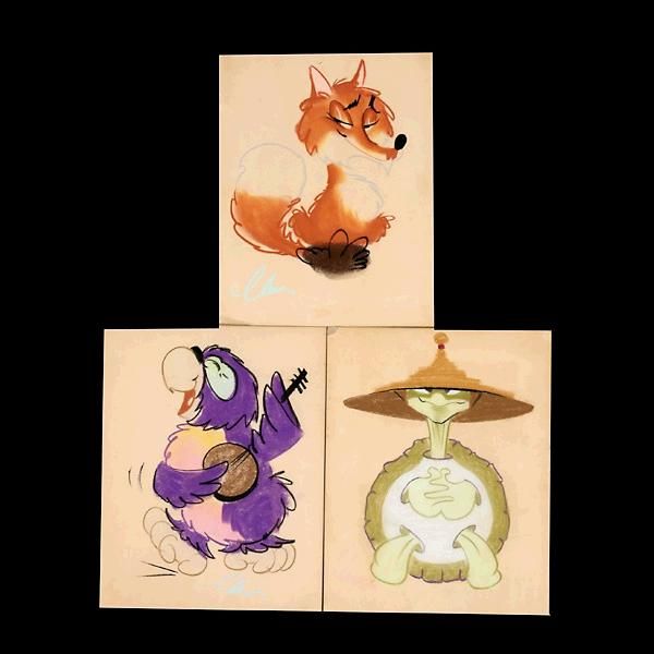 Three works: "Musical Parrot", "Asian Turtle" and "Clever Fox"