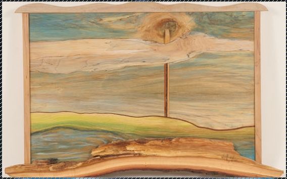 | Abstract surreal wooden construction landscape Various woods, vegetable dye | |