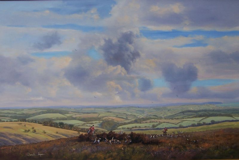 Huntsman and Hounds crossing open country