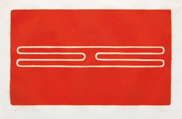 Woodcut in cadmium red, on offset paper