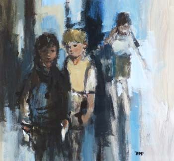 Children, initialled, with gallery label - 'The Thackeray Gallery, London on verso