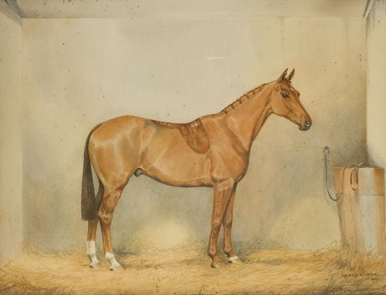 | STUDY OF THE HORSE "WILD HUNTSMAN" IN A LOOSE BOX | |