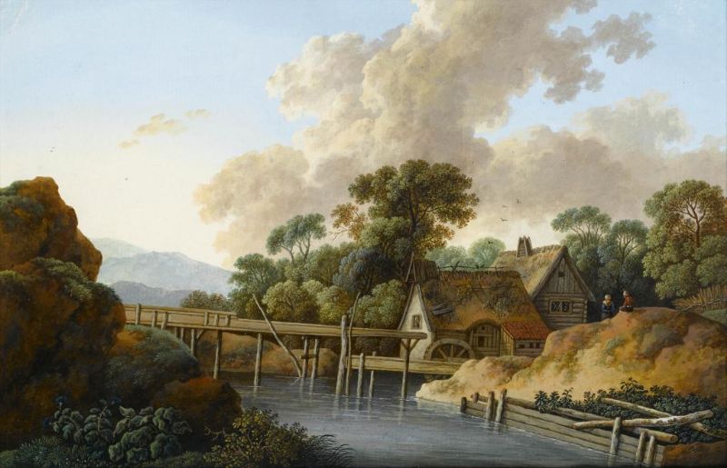 LANDSCAPE WITH FIGURES AT A WATERMILL