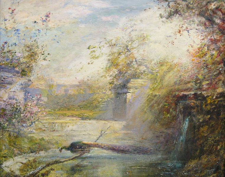 Landscape with a peacock