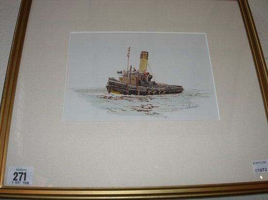 A tug boat at sea