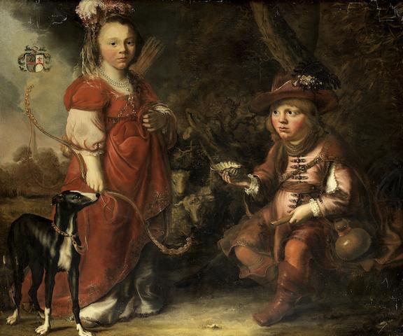 Portrait of a boy and girl as Granida and Daifilo, in a landscape