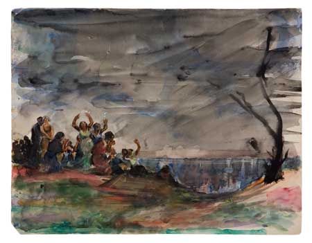 Watercolor over pencil on thick wove paper