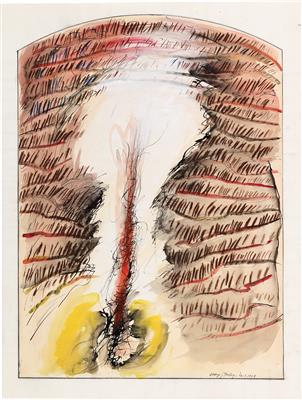 Ink watercolour, coloured pencil on paper