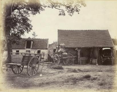 Charrettes dans une cour de ferme