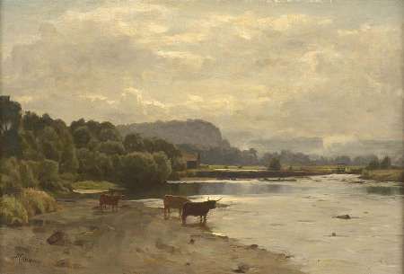 HIGHLAND CATTLE AT THE WATERING PLACE