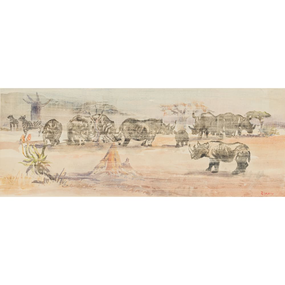 | Rhinoceros and Zebra in a Landscape | |