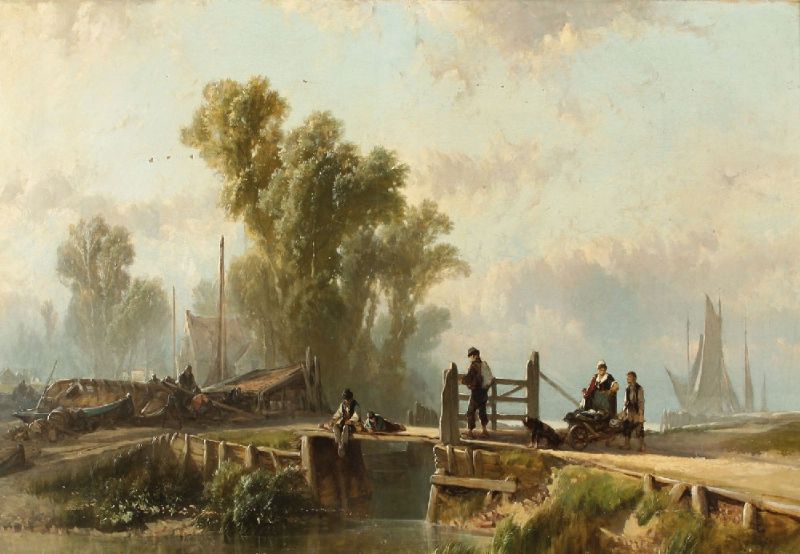 Figuren an einer Schleuse, im Hintergrund das Meer