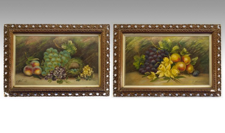 Pair of Still Lifes, Studies of Fruit and Flowers