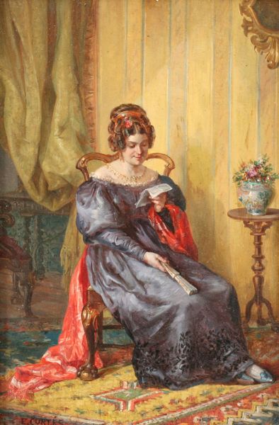 Seated Young Woman Reading a letter in a plush interior