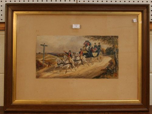 | Coaching Scene with Figures and Sportsmen on a Road passing | |