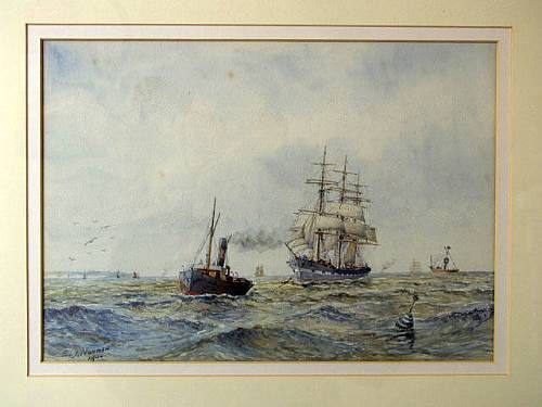 Study of a steam tug towing a clipper ship