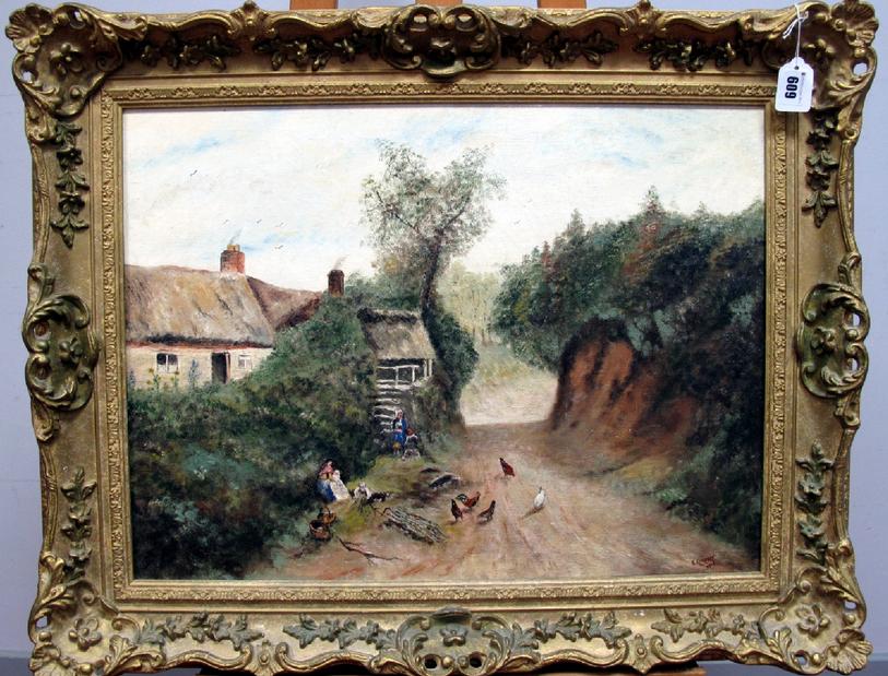 Thatched Cottages beside a Country Lane