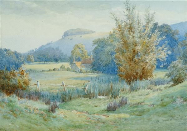 Landscape with cottage beyond