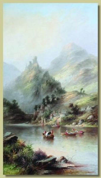 Italian lake scene with boats and figures