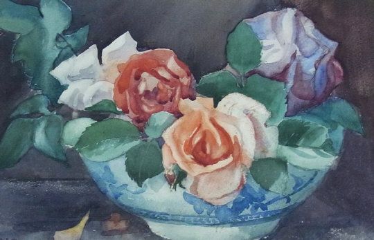 Still life of roses in a bowl
