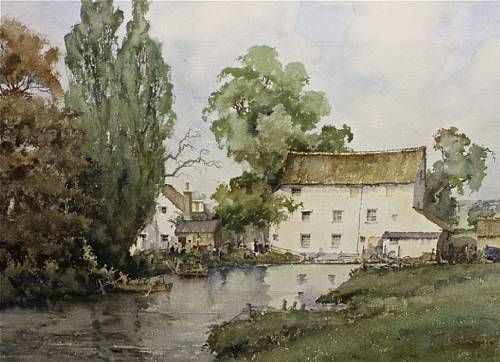 Rowing boats on a river by a cottage