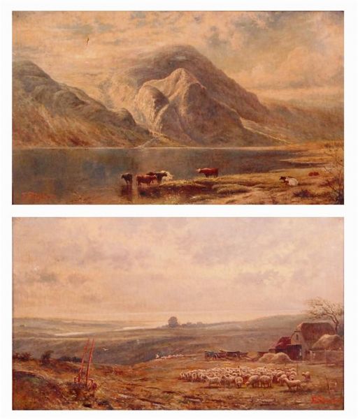 Cattle watering in a mountain lake & Sheep in an open landscape