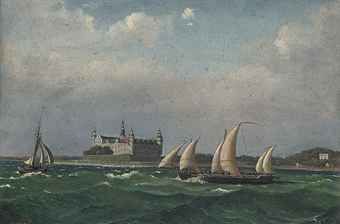 Shipping in the Sound before Kronborg Castle, Elsinore, Denmark