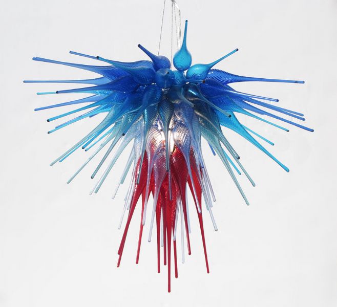 Red Fern Glass studio art glass chandelier by Ed Pennebaker