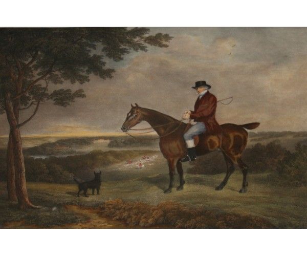 Gent on Horseback with Doghand