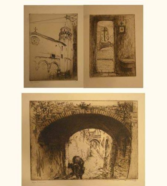 | PISE, SAN NICOLA ; SAN GIMIGNANO, LA SACRISTIE DE SANTA FINA ; SIENNE, GHETTO, CALLE DELLA MANNA. (Planches de la suite Impressi | |