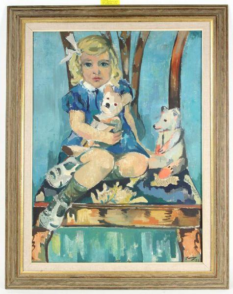Porträtt av flicka med nallar