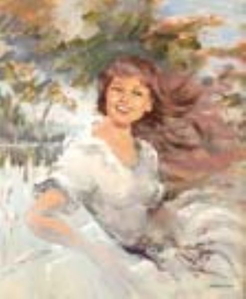 JEUNE FILLE RIANT AU BORD DU LAC