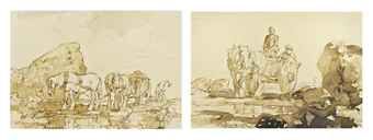 | Pencil pen and sepia ink; the second, sepia wash, on paper , 2 items | |