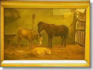 Donkeys a lamb and birds in a stable, "The City Pound"
