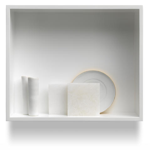 Porcelain alabaster, gold, aluminium and plexiglass